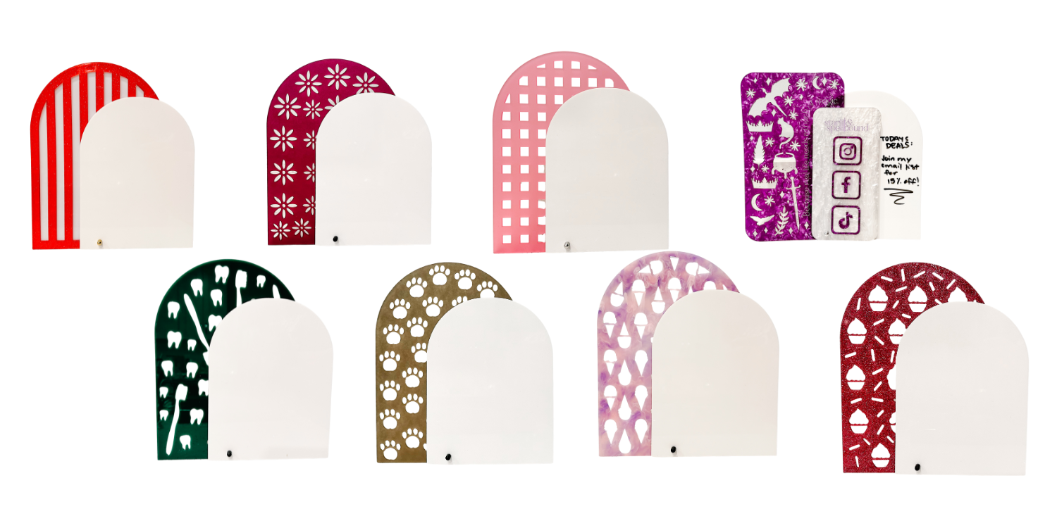 We've got a variety of shaped sign elements, perfect for creating unique and eye-catching displays that are able to be customized and tailored to your clients' needs. Business-owners are a perfect market for these because regardless of the type of business, it's likely they NEED signage, whether they are a product-based business or offering a service. You are in a unique position to create perfectly branded items for them!
