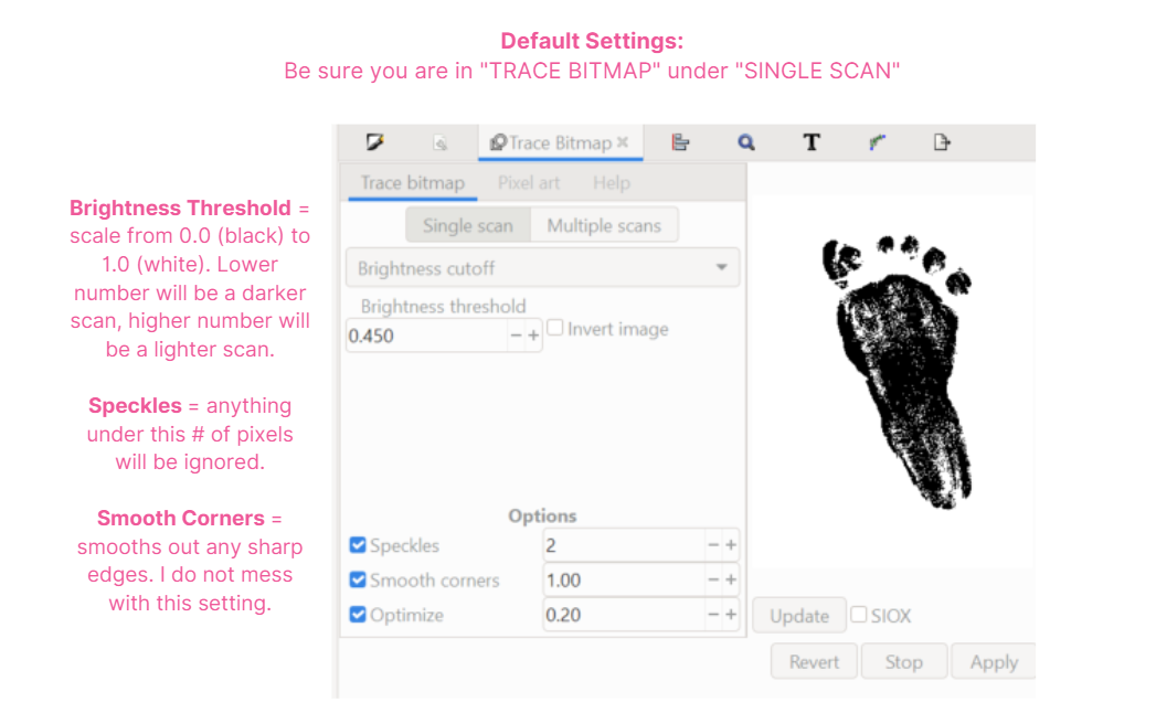 Not sure how to prepare your image for laser use? No problem! I've got you. I like Inkscape because I feel it gets the best quality image trace. Here's what you need to do:
