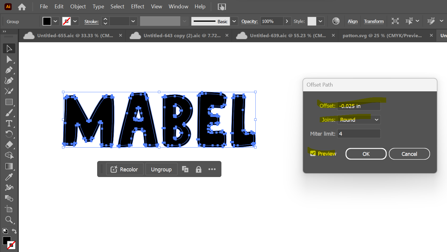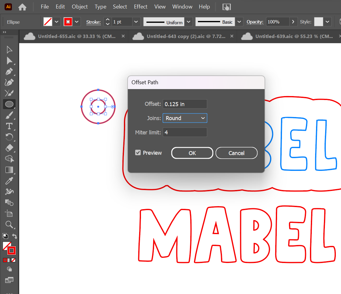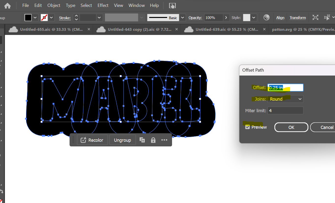 Click back on your text and repeat the "Object," > "Path," > "Offset Path" function. This time, you are going to use a positive number. I like to use 0.25 inches. You will not need to cut & paste it since you will be welding this whole piece as your backer.