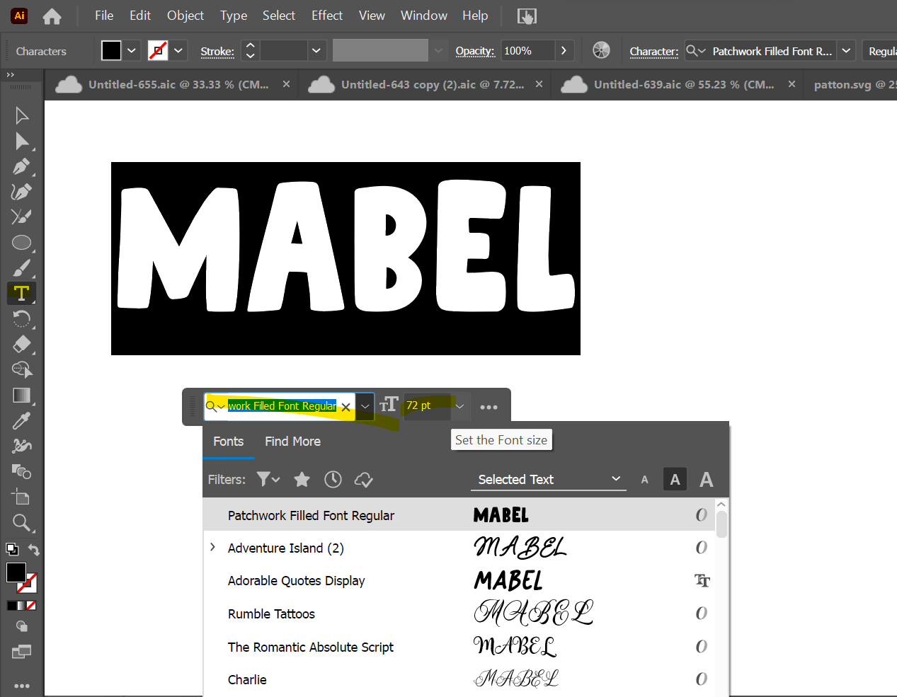 Type text and choose font. I used Patchwork from Creative Fabrica. (This is an affiliate link and I may earn a small commission if you purchase from it.) I recommend making your keychain around 3 inches in length. When making your text, keep this in mind that you will be adding about an inch of offset around it.